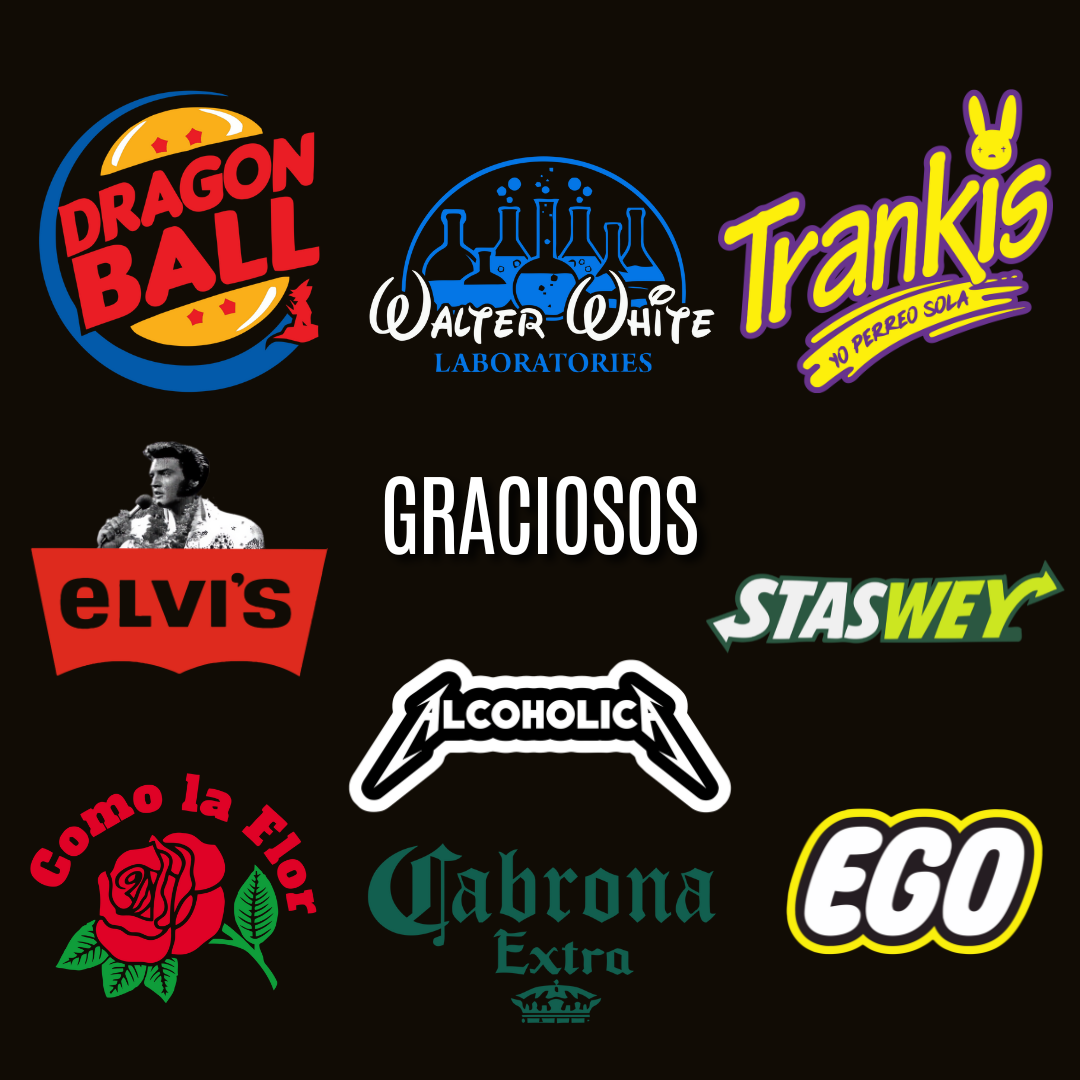 Organizados por temáticas: moda, artistas, marcas, cultura pop, frases virales, deportes, autos, películas y más.